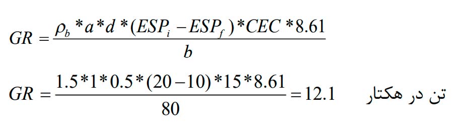 فرمول محاسبه مقدار گچ مورد نیاز برای اصلاح خاکهای شور و سدیمی