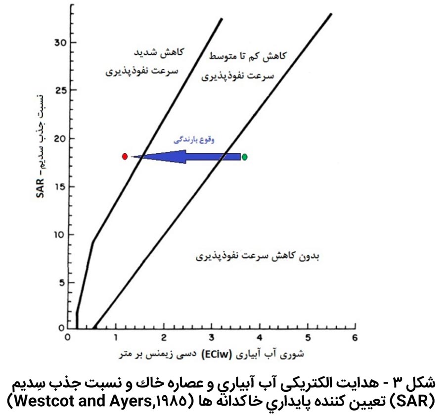 نمودار هدایت الکتریکی آب آبیاری و عصاره خاک و نسبت جذب سدیم (SAR) تعیین کننده پایداری خاکدانه ها