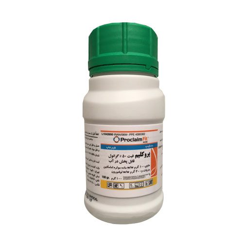 حشره کش پروکلیم فیت (Proclaim Fit) گرانول قابل پخش در آب (WG 50) ساخت شرکت سینجنتا سوییس (Syngenta) حاوی ۴۰۰ گرم لوفنورون و ۱۰۰ گرم امامکتین بنزوآت در کیلوگرم است . لوفنورون از گروه تنظیم کننده های رشد IGR و ممانعت کننده از سنتز کتین بوده که لارو های سن پایین را از بین می برد و تخم حشرات را نابارور می سازد. امامكتین بنزوآت از گروه آورمکتین است و تشدید کننده گابا در سیستم عصبی محسوب می گردد که سبب مرگ حشرات حساس خواهد شد. امامكتین بنزوات لارو کشی است که با باز نگهداشتن کانال کلر موجب اختلال در سیستم اعصاب و مرگ حشرات هدف می شود. تاثیر تماسی امامكتین بنزوآت کوتاه ولی بصورت گوارشی سبب مرگ لارو آفات هدف می گردد. Proclaim Fit مخلوطی از دو حشره کش قوی است که بسیاری از آفات و بخصوص لارو پروانه ها را بخوبی کنترل می نماید. پروکلیم فیت اثر تماسی و گوارشی داشته و با داشتن دو مکانیزم عمل متفاوت گزینه بسیار مناسبی جهت کنترل آفات مقاوم به حشره کشهای فسفره و پایروتیروئیدها می باشد.