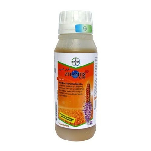 آتلانتیس محصول شرکت بایر آلمان علفکشی پس رويشی از گروه شيميائی سولفونيل اوره که از دو ماده موثر همراه با جديدترن ايمن کننده گندم تشکيل شده است. ماده ایمن کننده به صورت یک کاتالیزور عمل میکند و موجب تجزیه سریع مواد موثر علف کش آتلانتیس در گندم میشود. آتلانتیس پس از تماس با برگهای علف هرز ماده موثر آن داخل آوندهای چوب و آبکش به طرف بالا و پایین گیاه حرکت میکند . طرز تاثیر آن جلوگیری از سنتز آنزیم استوهیدروکسی اسید میباشد.