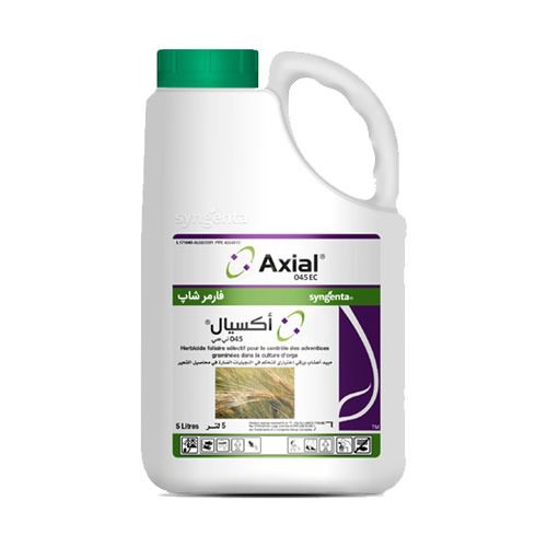 علف کش آکسیال توسط شرکت سینجنتا – سوئیس کشف و ساخته شده و از جدید ترین علفکشهای کنترل کننده علفهای هرز کشیده برگ در گندم و جو محسوب می شود. این علفکش حاوی ۵۰ گرم ماده مؤثر پینوکسادن مخلوط با ایمن کننده کلوکینتوست و سورفکتانتهای لازم است و هیچ نیازی به افزودن روغن یا مویان ندارد. آکسیال از طریق برگها جذب و به دلیل دارا بودن خاصیت سیستمیک بسیار قوی به سرعت در داخل آوندها در همه جهت حرکت کرده و در تمام گیاه منتشر می شود. آکسیال هیچگونه اثر گیاهسوزی یا بازدارندگی روی گندم و جو نداشته و می توان آن را با اطمینان خاطر مصرف نمود. Axial به سرعت در محیط تجزیه شده و هیچگونه باقیمانده ای در خاک نداشته و اثر سویی بر محصول بعدی نخواهد گذاشت. آکسیال به دلیل همراه داشتن مواد خاص در برابر آبشویی مقاوم بوده و بارندگی تا یک ساعت پس از سمپاشی از کارآیی آن نمی کاهد .