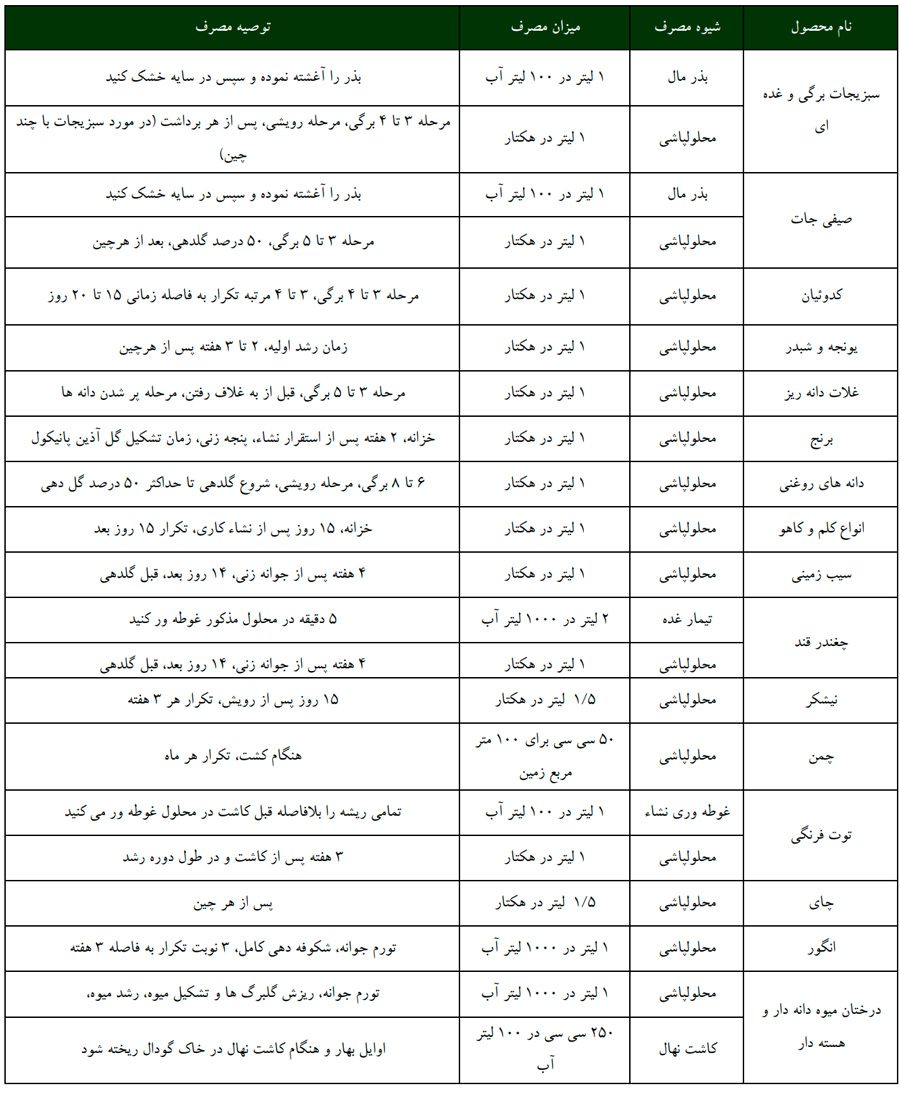 میزان و موارد مصرف کود جلبک دریایی آسکومارین