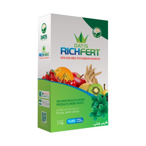 کود DATIS RICH FERT HUMIC ACID & FULVIC ACID POWDER تولید شرکت سبز محصول داتیس تحت لیسانس شرکت Eden Modern Agriculture اسپانیا یک گرانول بسیار ریز محلول در آب بوده که از بهترین معادن لئوناردیت استخراج میشود.این کود دارای هیومیک و فولویک اسید بوده و هیومیک موجود در این کود موجب بهبود ساختمان فیزیکی و خصوصیات شیمیایی خاک مانند اسیدیته و هدایت الکتریکی خاک می گردد. افزایش تبادل کاتیون و شرایط هوادهی باعث تحریک فعالیتهای میکروارگانیسم خاک و کاهش آلاینده ها در خاک می شود. فولویک موجود در کود به عنوان کلات طبیعی عمل کرده و موجب افزایش جذب عناصر غذایی ماکرو و میکرو توسط ریشه می گردد. این ترکیب با خواص شگفت آوری که دارد تاثییر کودهای معدنی را در خاک به طور چشمگیری افزایش می دهد. این محصول با افزایش فتوسنتز ، عملکرد محصول را افزایش می دهد و کیفیت محصولات کشاورزی را بهبود می بخشد.