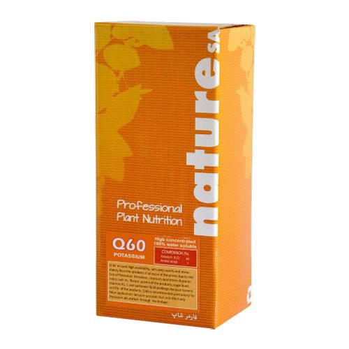 یک کود پتاسیمی کاملا محلول در آب غنی شده با آمینو اسید ها می باشد . این ترکیب یک تضمین برای دسترسی بالا به پتاسیم میباشد که در صورتی که گیاه در اثر فقدان پتاسیم با خطر مواجه شود سریعا عمل کرده و گیاه را نجات می دهد . اثر پایه کود کیو 60 ( Q60 ) بهبود شاخص های کیفیتی مانند عطر و طعم در میوه ها ,سطح قند و ویتامین B و C و کارتن میباشد. این کود باعث کاهش اسید اگزالیک نامطلوب که عامل کاهش ماندگاری محصول پس از برداشت است و بهبود مقاومت گیاه پس از برداشت و همینطور بهبود رنگ در گیاهان خانواده توتون و تنباکو میشود . این کود خصوصا برای محلولپاشی برگی توصیه میشود که پتاسیم موجود در آن به سرعت از برگ جذب و قابل استفاده برای گیاه میباشد . کاربرد این کود به صورت مصرف خاکی در مواردی که PH خاک خنثی یا اسیدی باشد توصیه میشود. این کود حاوی نوعی ترکیب آلی که عامل رنگدانه نارنجی در گیاهان است که منبعی ارزشمند برای ویتامین و غیره است .