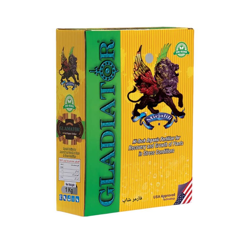 کود گلادیاتور (GLADIATOR) محصول شرکت زمرد سبز کویر برند میرجلیلی نسل جدیدی از کودهای ارگانیک و تقویتی است که با فرمولاسیونی پیشرفته و ترکیبی از آمینو اسیدهای آزاد گیاهی، مواد معدنی، اکسینهای تخصصی، نیتروژن و کربن آلی طراحی شده است. این کود همانند یک سپر محافظ برای گیاه عمل میکند و توانایی شگفتانگیزی در بازگرداندن گیاه از شرایط تنشزا به حالت طبیعی دارد.